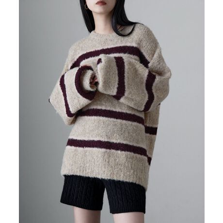 モコモコとしたブークレ素材のボーダーニットの登場です。
