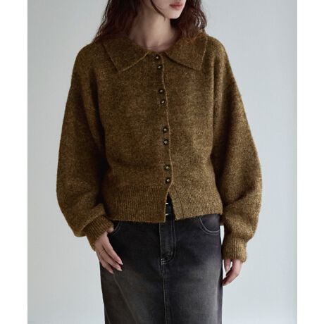 etoll. エトル ニットの柔らかな素材感とスマートな襟デザインでこなれる、ショート丈のニットカーディガン。