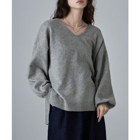 etoll. エトル ゆるやかなカーブを描いたVネックのニットプルオーバー。