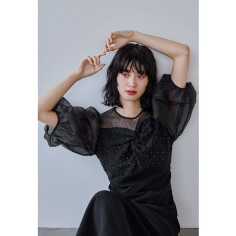 ふんわりとしたオーガンジー素材のパフスリーブで上品な印象に。