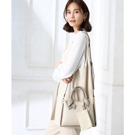 [型番:356087]上品な配色が映えるきれいめ万能バッグ異素材風の配色デザインが大人の上品さを引き立てるバッグ。程よいサイズ感で荷物がしっかり入り、内側の仕切りで整理もしやすい仕様。ハンド・ショルダーの2WAYで使え、通勤からお出かけまで幅広く活躍します。シンプルコーデに合わせるだけで洗練された印象に仕上がる、毎日に頼れる一品です。