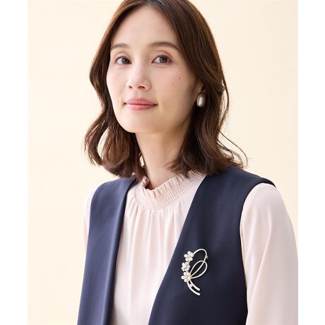 [型番:356090]結んだ瞬間装いに華やぎを与えるブローチ繊細なリボンモチーフに、パール調とビジューをあしらった上品なブローチ。やわらかな曲線デザインが女性らしさを引き立て、胸元や襟元にさりげない華やかさを添えます。オケージョンシーンはもちろん、シンプルな装いのアクセントとしても活躍するアイテムです。