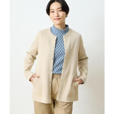 [型番:491248]大人のための万能カーデすっきりとしたシルエットが魅力のWフェイスカーディガン。程よいハリのある生地が体のラインを拾いすぎず、きれいめにもカジュアルにも合わせやすい一枚です。軽い着心地で季節の変わり目の羽織りとして重宝し、パンツにもスカートにも好相性。デイリーコーデを上品に仕上げる万能アイテムです。