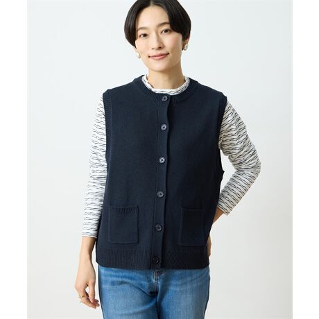 シンプルながらも上品な華やかさをプラスしてくれるニットベスト。