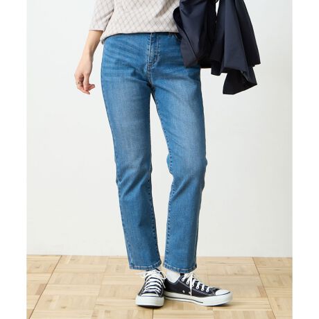 ほどよく細身のシルエットで、脚をすっきりと長く見せるデニムスリムパンツ。