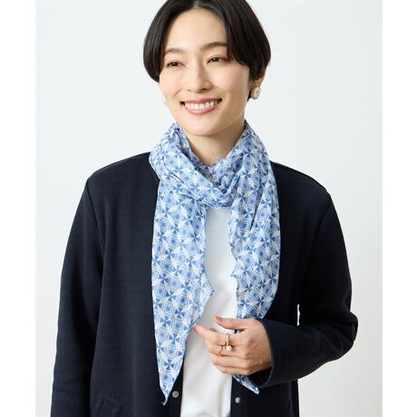 [型番:496203]軽やかに纏う上品モノグラムが魅力的なストール繊細なモノグラム柄がやさしく映えるストール。薄手で軽く、さらりと巻くだけで大人カジュアルに上品さをプラスします。普段使いから旅先の温度調整まで幅広く活躍する万能アイテムです。バッグに忍ばせやすいサイズ感で、持ち歩きにも便利なひと品。