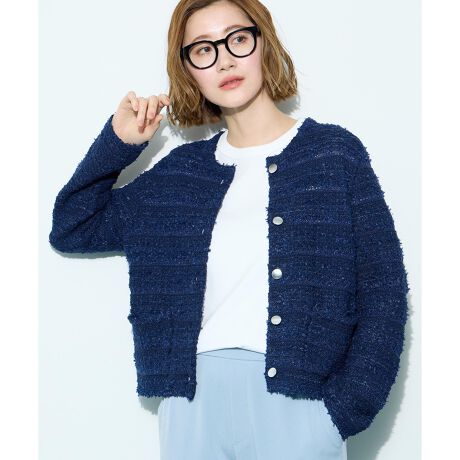 ツイード風ニットクルーカーディガン【ハンドウォッシャブル】