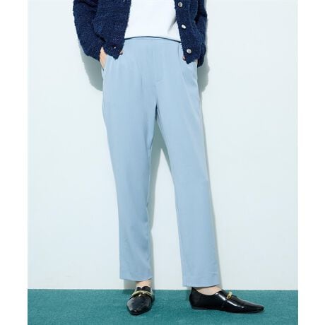 [型番:524318]毎日穿きたいきれい見え無重力パンツウエストゴム仕様で一日中らくちんな、すご楽シリーズのテーパードパンツ。落ち感のある素材が脚のシルエットをすっきり見せ、オンオフ兼用の万能デザインです。縦のラインを意識したシルエットで、自然にスタイルアップ見えを叶えます。シンプルなトップスと合わせるだけで大人きれいめに仕上がります。