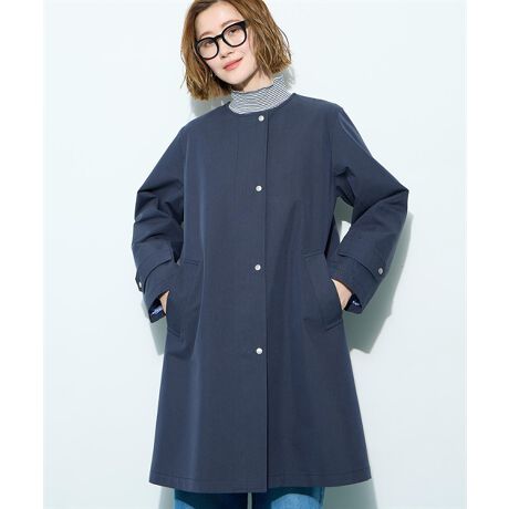 [型番:525238]どんなコーデにも馴染むノーカラーコート顔まわりをすっきり見せるノーカラーデザインが魅力の軽やかコート。上品なシルエットで羽織るだけで大人らしい雰囲気に仕上がります。ニットやブラウスとも合わせやすく、きれいめにもカジュアルにも対応。デイリーに活躍する万能アウターです。