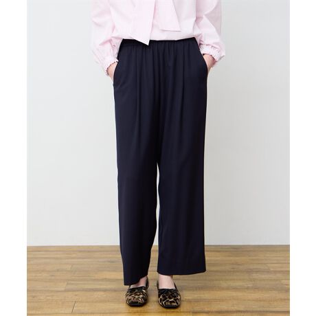 [型番:294137]すっきり見せと快適さを両立した大人のためのきれい見えパンツ程よい落ち感と上品な表面感が魅力のスマートパンツ。ウエストは総ゴム仕様で穿き心地が軽く、タックを入れることで気になる腰まわりも自然にカバーします。ワイドすぎないストレートラインが脚をまっすぐ見せ、オンにもオフにも活躍。ブラウス合わせのきれいめスタイルはもちろん、ニットでの大人カジュアルにもおすすめです。