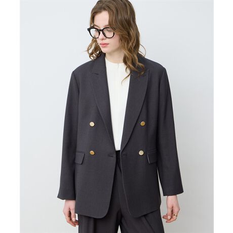 [型番:295105]大人の装いを格上げするダブルジャケットクラシックなボタンがアクセントになったダブルブレストジャケット。すっきりとしたシルエットで、オンにもオフにも合わせやすい一着です。ほどよいハリのある素材が上品な印象を演出し、ニットやブラウスと合わせるだけで大人カジュアルからきれいめまで活躍。デニムを合わせてもバランスよく決まる万能アイテムです。