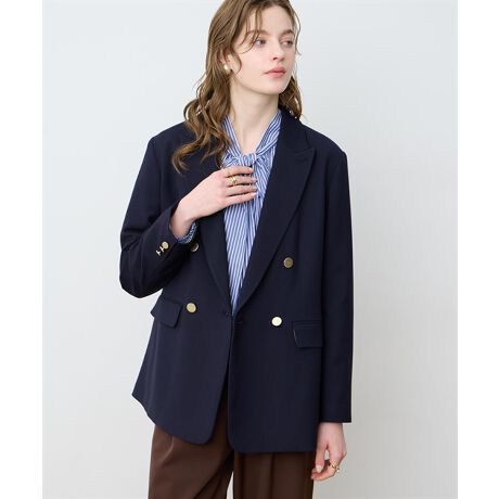 [型番:295105]大人の装いを格上げするダブルジャケットクラシックなボタンがアクセントになったダブルブレストジャケット。すっきりとしたシルエットで、オンにもオフにも合わせやすい一着です。ほどよいハリのある素材が上品な印象を演出し、ニットやブラウスと合わせるだけで大人カジュアルからきれいめまで活躍。デニムを合わせてもバランスよく決まる万能アイテムです。