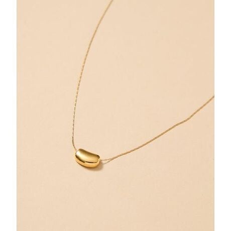 極細チェーンに小さなビーンズ型モチーフをあしらい、控えめながら存在感のある仕上がり。首元に自然と視線を集め、ミニマムでも女性らしい印象を演出します。
