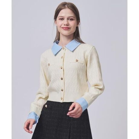 【NEW YEAR SPECIAL ITEM】〜2wayで楽しむ、レイヤードケーブルニット〜【Point】・ケーブル編みニットにシャツ襟を重ねたような、きちんと感と可愛らしさを兼ね備えたトップス。・ゴールドボタンが上品なアクセントとなり、装いを華やかに仕上げます。・シャツ襟はボタンで取り外し可能なので、きれいめにもシンプルにも着こなしのアレンジが楽しめるのがポイント♪・程よくコンパクトなシルエットで、スカートにもパンツにも合わせやすく、1枚で着映えが叶います。ケア方法:手洗い可能透け感:なし裏地:なし伸縮性:あり光沢感:なし生地の厚さ:中肉