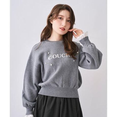 【袖口まで可愛い、レイヤード見えロゴニット】【Point】・胸元のロゴデザインにパールをあしらい、さりげない華やかさをプラスした大人可愛いロゴニット。・ほどよくゆとりのあるシルエットで抜け感がありながらも、肩まわりをすっきり見せてくれるバランスの良い一枚です。・袖口にはフェミニンなフリルをレイヤードしたようなデザインを取り入れ、腕を動かすたびに女性らしいニュアンスが漂う仕上がりに。・袖口のフリルは取り外し可能です。ロゴの存在感はありつつも、全体がシックにまとまるので、スカート合わせでガーリーにも、パンツで大人カジュアルにも着こなせます。デイリー使いはもちろん、ちょっとしたお出かけにも活躍する着映えニットです。ケア方法:手洗い可能透け感:なし裏地:なし伸縮性:あり光沢感:なし生地の厚さ:やや厚手