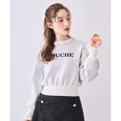 【袖口まで可愛い、レイヤード見えロゴニット】【Point】・胸元のロゴデザインにパールをあしらい、さりげない華やかさをプラスした大人可愛いロゴニット。・ほどよくゆとりのあるシルエットで抜け感がありながらも、肩まわりをすっきり見せてくれるバランスの良い一枚です。・袖口にはフェミニンなフリルをレイヤードしたようなデザインを取り入れ、腕を動かすたびに女性らしいニュアンスが漂う仕上がりに。・袖口のフリルは取り外し可能です。ロゴの存在感はありつつも、全体がシックにまとまるので、スカート合わせでガーリーにも、パンツで大人カジュアルにも着こなせます。デイリー使いはもちろん、ちょっとしたお出かけにも活躍する着映えニットです。ケア方法:手洗い可能透け感:なし裏地:なし伸縮性:あり光沢感:なし生地の厚さ:やや厚手