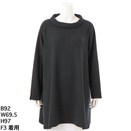 ワントーンでベーシックながら、こなれた印象に仕上げたロールネック針抜きニットチュニック。