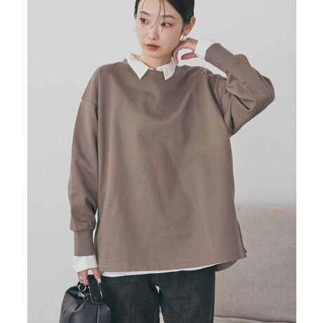 両サイドに施したファスナー付きスリットがポイントの裏毛プルオーバー。