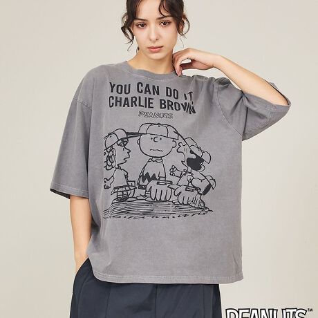 PEANUTSが表現するアメリカカルチャーをグラフィックに落とし込んだTシャツ。インパクトのある大きめのグラフィックがプリントされており、トレンド感◎おおきめシルエットなのでゆったりとご着用いただけます。