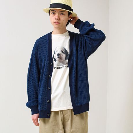 表情のあるバーズアイ柄が映えるVネックカーディガン