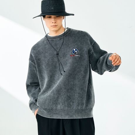 デニムやチノパンと合わせて、刺繍とフェード感を主役にしたシンプルコーデ