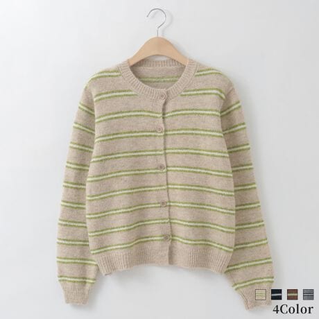 配色デザインのボーダー柄がアクセントになったニットカーディガン。