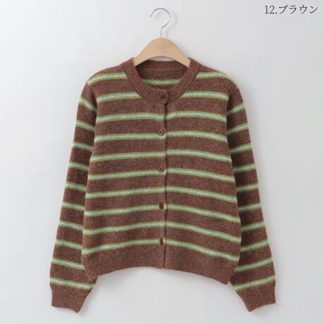 配色デザインのボーダー柄がアクセントになったニットカーディガン。