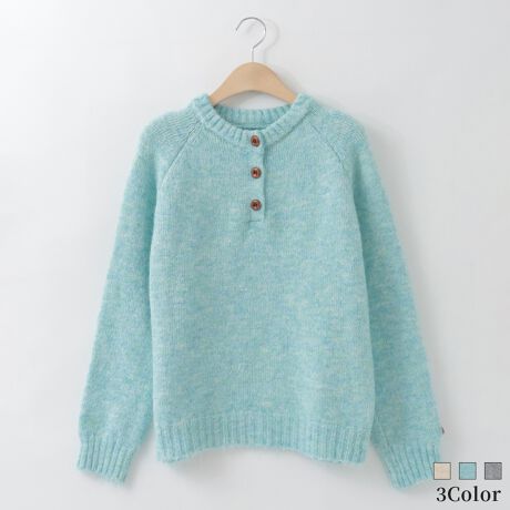 トレンドのハーフボタンディテールが目を惹くニットプルオーバー。