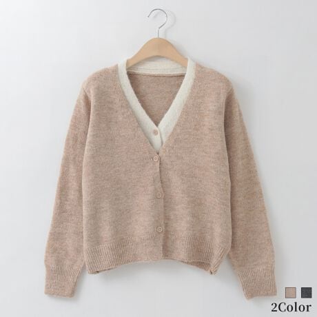 レイヤード風バイカラーニットカーディガン