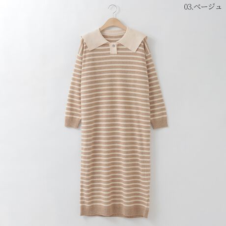 セーラーカラーボーダーニットワンピース[14942095]macaron