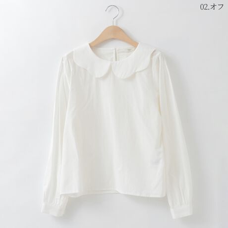 丸みのあるスカラップカラーが顔周りを優しく見せてくれるナチュラルブラウス。