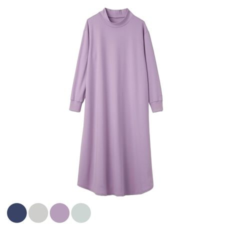 ドロップショルダーの A ラインが女性らしいシルエットを演出してくれます。 首元はハイネックであたたかく、やわらかい素材で締め付け感がないためストレスを感じません。 レギンスと合わせてコーディネイトしても◎