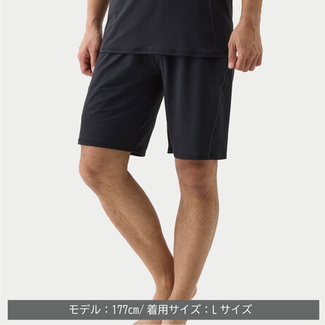 就寝時はもちろん、移動時やトレーニング後も心地よく過ごせるひざ丈のハーフパンツ。