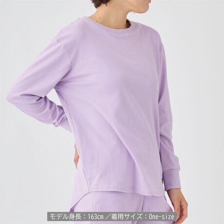 ほどよいゆとりと後ろ丈が長いシャツテイルの裾で、気になる腰回りやヒップをカバー。 首回りと袖にリブを使用し、あたたかさを閉じ込めてくれます。