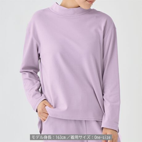 ほどよいゆとりと後ろ丈が長いシャツテイルの裾で、気になるお腹まわりやヒップをカバー。 首元はハイネックであたたかく、やわらかい素材で締め付け感がないためストレスを感じません。
