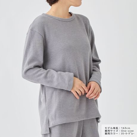 セーターのように優しく体を包み、ほどよいゆとりとドロップショルダーのリラックスシルエット。