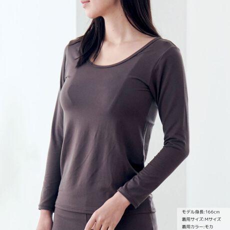 柔らかさと伸縮性、肌にスッとなじむようなフィット感がありながらも、吸放湿性に優れているので、蒸れにくくサラッと快適にお過ごしいただけます。