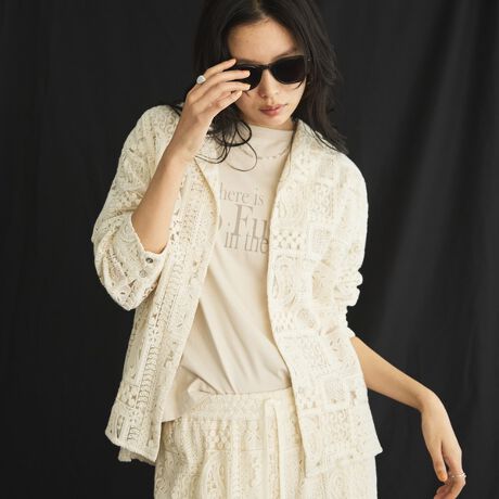 凹凸のある表面感が魅力のパッチワークレースシャツ