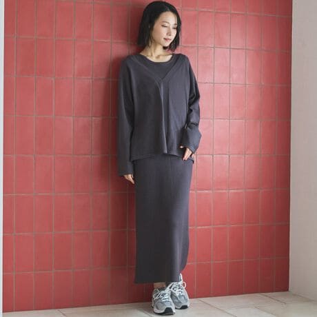 ・すっきりなリブニットワンピとゆるっと着られる V ネックニットのセットアイテム