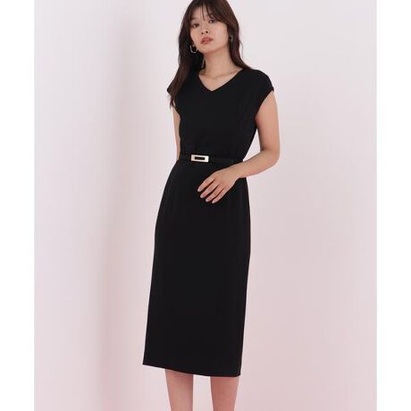 すっきりとしたVネックに上品な共地ベルトが付いたエレガントなワンピース。程良く身体に沿ったシルエットは女性の身体を美しく見せ、オケージョンにもデイリーにも使いやすいドレスになっています。肩が隠れる丈で腕を細く見せるカッティングが特長です。同素材のジャケットと合わせスーツやお仕事着、普段のキレイ目なシーンでのワンピースとして幅広く活躍するひざ下ワンピースです。