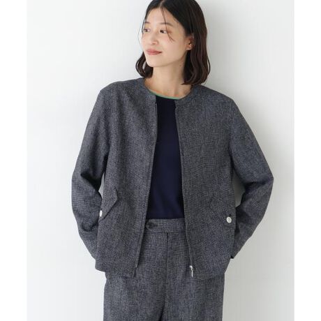 程よい凹凸感のあるツィードが上品なノーカラーブルゾン