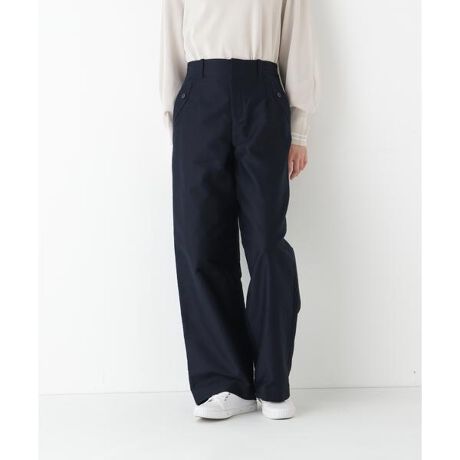 前脇ポケット口に見えてくる飾りフラップがポイントのノータックセミワイドパンツです。