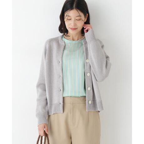 爽やかな印象を演出してくれるギマカーディガンは、羽織りとしてもボタンを留めて一枚着としても汎用性の高いアイテム。すっきりとした丈感でワイドパンツやフレアースカートなどの分量感のあるアイテムボトムとのスタイリングがお勧めです。