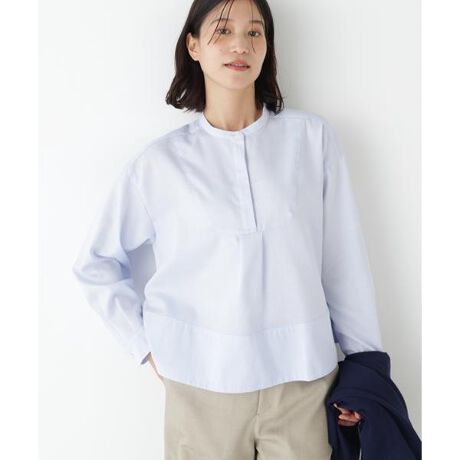 human womanらしいトラッドな雰囲気がありながら裾に広がるシルエットが新鮮な1枚着ブラウスです。裾には身頃と違う同色生地を2重に使用し、張り感を持たせることでシルエットを出したオシャレなデザイン。後ろ身頃のボックスタックも小技を効かせたデザインです。
