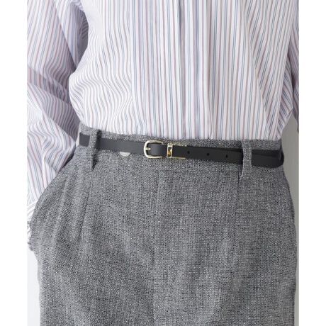 バックル先端を引っ張りながら回転させるとリバーシブルとなるレザーベルトです。
