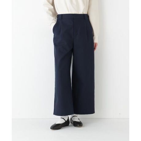 定番のガウチョシルエットパンツです。しっかりとした生地の肉感を活かし、シルエットがきれいなキレイ目カジュアルパンツです。脇のタブでウエスト寸法を調整可能です。