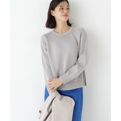 胸ヨークに目立ての入った求心柄のクルーネックプルオーバー。両脇にスリットが入ったボックスシルエットで軽さを出しました。