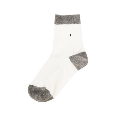 [型番:0776197200]フレンチカジュアルな足元にぴったりのオリジナルバイカラーソックス【デザインのポイント】履き口、かかと、つま先に配色を施したトラッドなオリジナルバイカラーソックスです。「h」の刺繍もワンポイントです。【素材のポイント】程よくカジュアルなコットンコーマ糸で編み上げています。【おすすめコーディネート】フレンチカジュアルなスタイリングの足元にぴったりなソックスです。