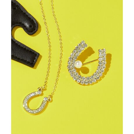 ■デザイン・素材・繊細な輝きを放つビジューが、シンプルな装いに上品なアクセントをプラスします。・ジャケットやブラウス、バッグなど、さまざまなアイテムに合わせやすいデザインです。・幸運を呼ぶホースシューモチーフをビジューと一粒のイミテーションパールで華やかに表現しました。・繊細な輝きがエレガントな印象を演出します。・幅広いコーディネートにマッチするシンプルなデザインが嬉しいポイントです。・フォーマルからカジュアルまで多彩なシーンで活躍間違いなし。・ギフトにもおすすめなアイテムです。