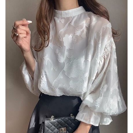 -透け感が上品で華やかな立体感が映えるジャガードブラウス